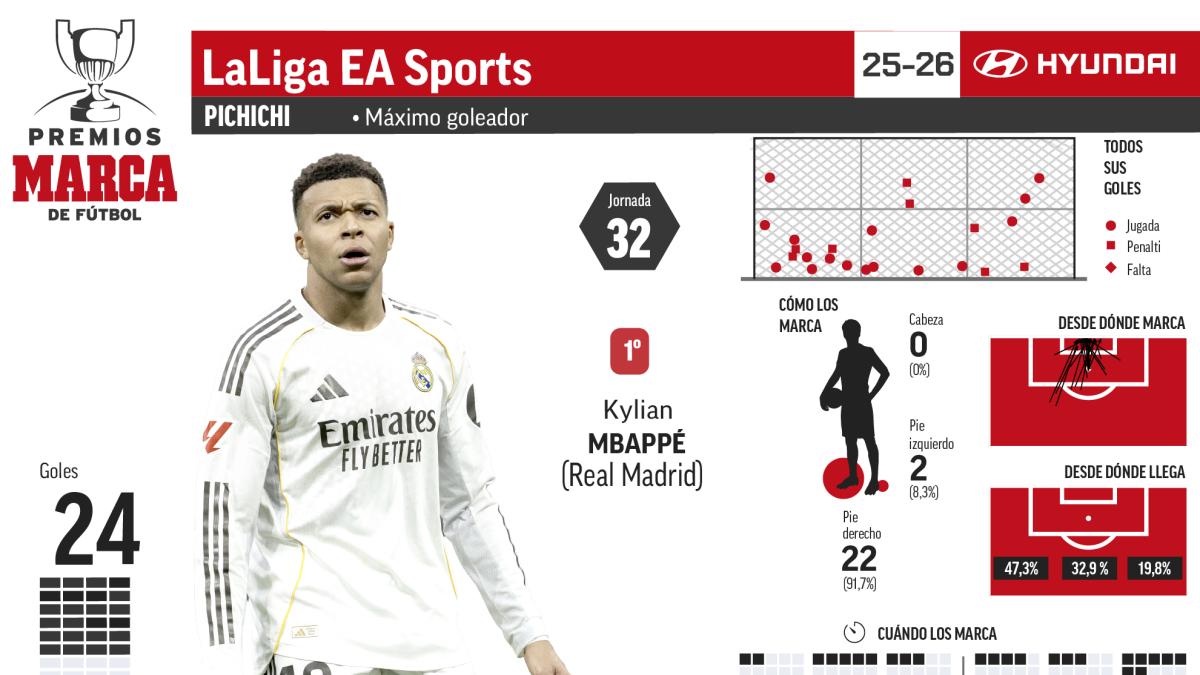 La estrella del Barça (16 gles), que no jugará más esta temporada puede ser superado por Ferran y Oyarzabal (14 goles), Borja Iglesias (12 goles) o Toni Martínez (11 goles)