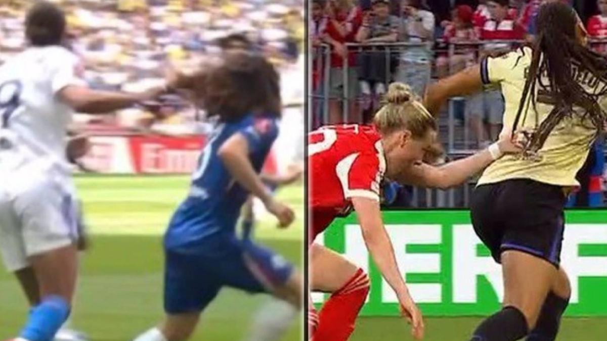 Un tirón de pelo sobre Marc Cucurella no fue sancionado tras ser revisado en el VAR y un tiró de pelo sobre Salma Paralluelo fue castigado con tarjeta roja